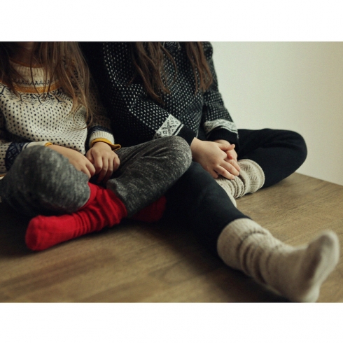 ○□模様のニット。 薄手で着心地の良い素材感。 ドロップショルダーで、袖口と裾は編地がくるんとカールしています。 男の子にも女の子にも♡