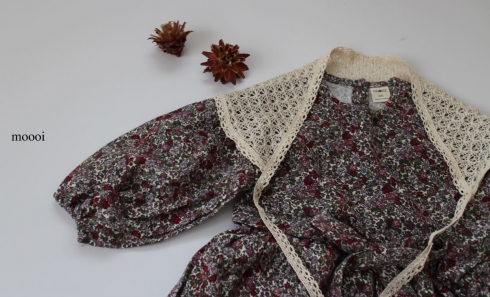 フラワープリントのワンピースです。 シックなブラックカラーとかわいらしいオフカラー。 ウエストにはリボンが結べるベルトが付いています。 別売りのレースバブーシュカとのコーディネートがオススメです。